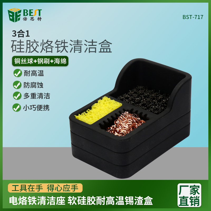 返回當(dāng)前位置: 首頁(yè) / 產(chǎn)品中心 / BST-717 硅膠烙鐵清潔盒 三合一電烙鐵頭清潔盒 硅膠耐高溫焊咀焊接清潔銅絲球錫渣盒清潔器 清潔座