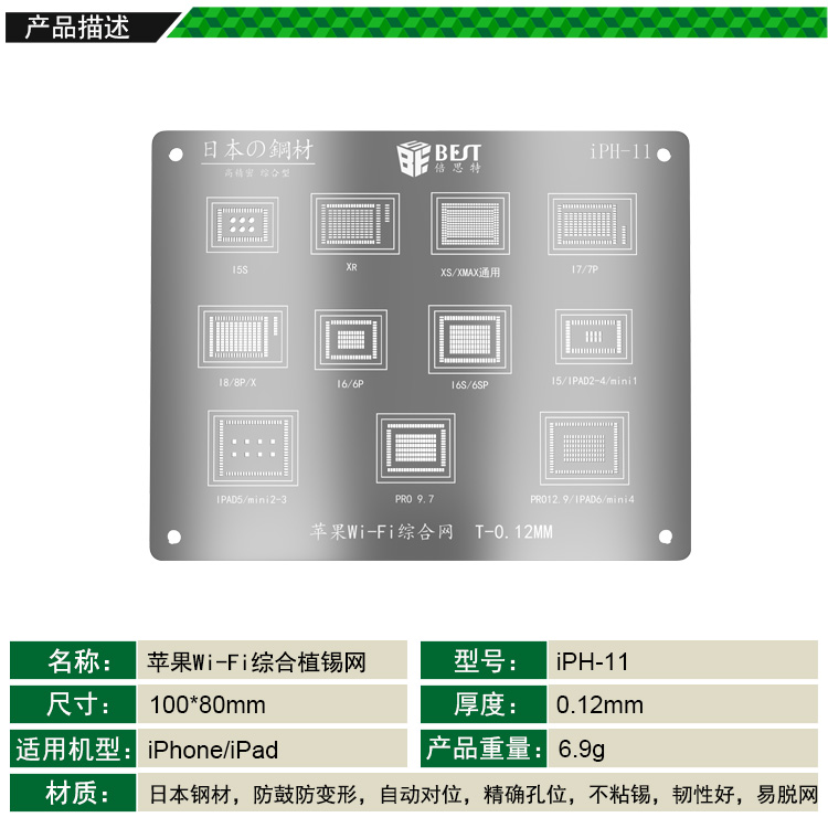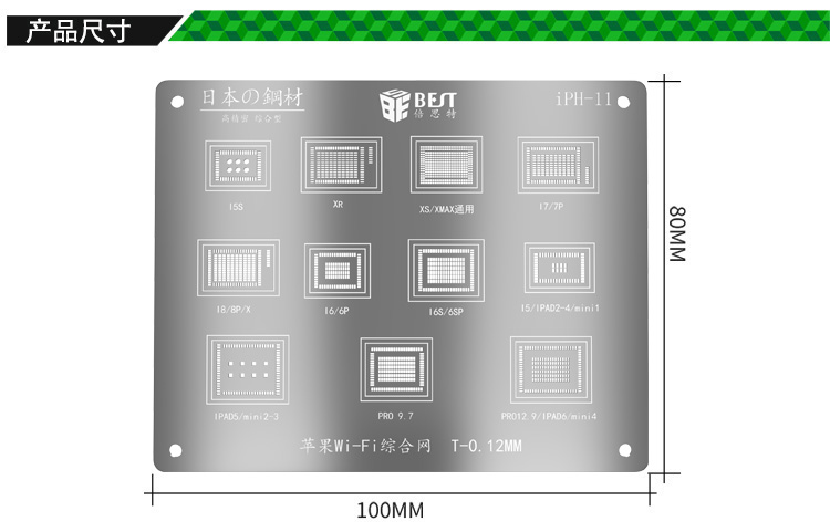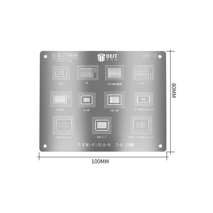 返回當(dāng)前位置: 首頁 / 產(chǎn)品中心 / iPH-11 手機(jī)Wi-Fi綜合植錫網(wǎng) 多用植錫方孔定位鋼網(wǎng) 植錫卡