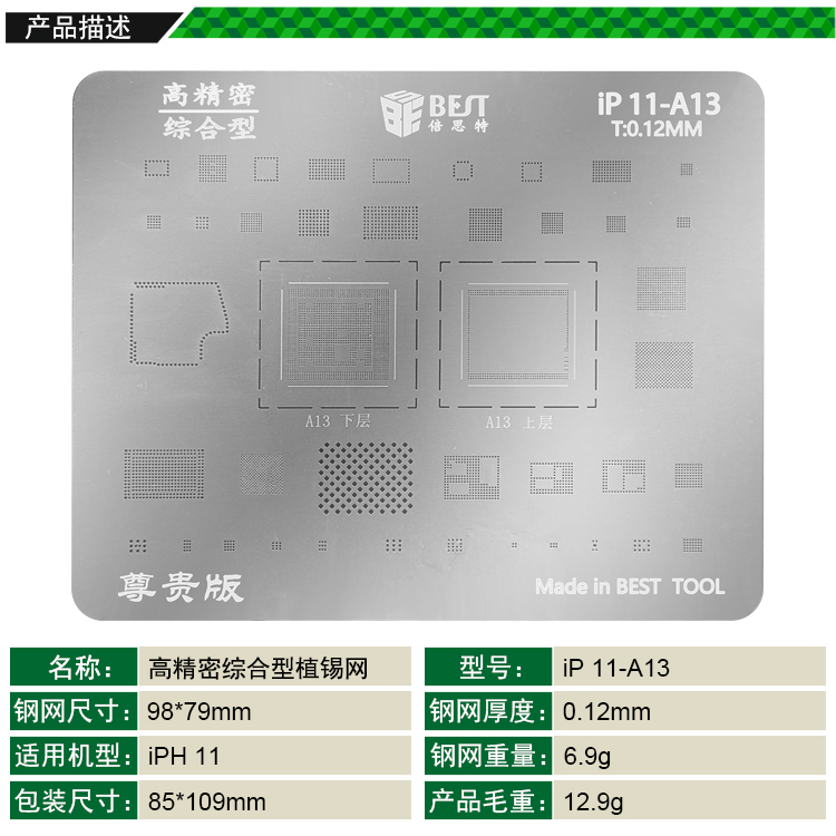 返回當(dāng)前位置: 首頁 / 產(chǎn)品中心 / iP 11-A13 BGA植錫網(wǎng) 多用植錫方孔定位鋼網(wǎng) 植錫卡(尊貴版)