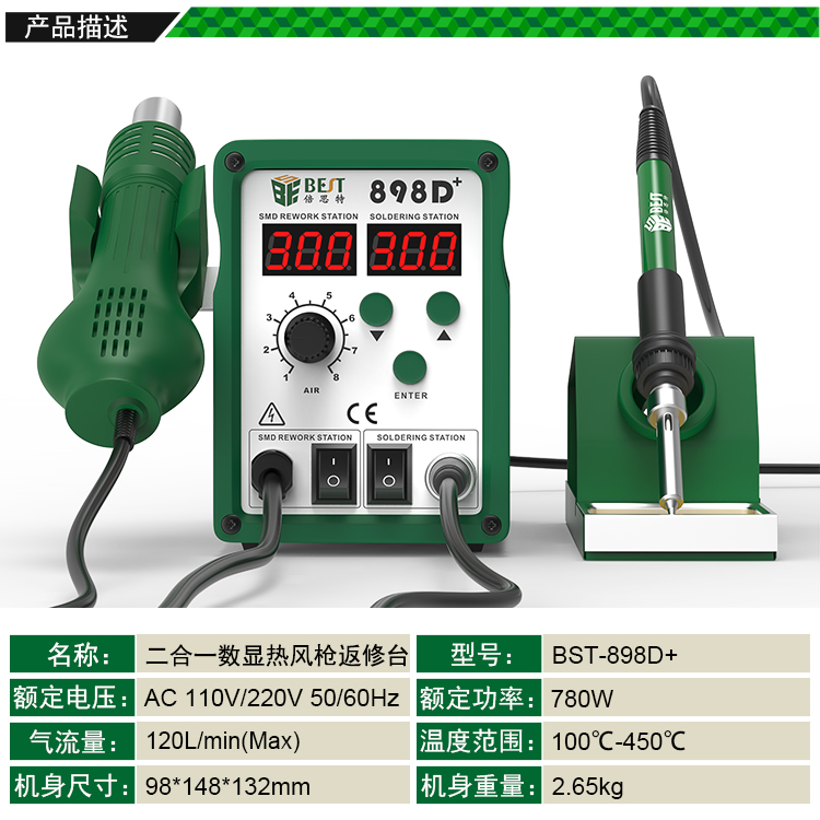 返回當(dāng)前位置: 首頁 / 產(chǎn)品中心 / BST-898D+ 二合一雙數(shù)顯智能無鉛螺旋式熱風(fēng)槍+焊臺