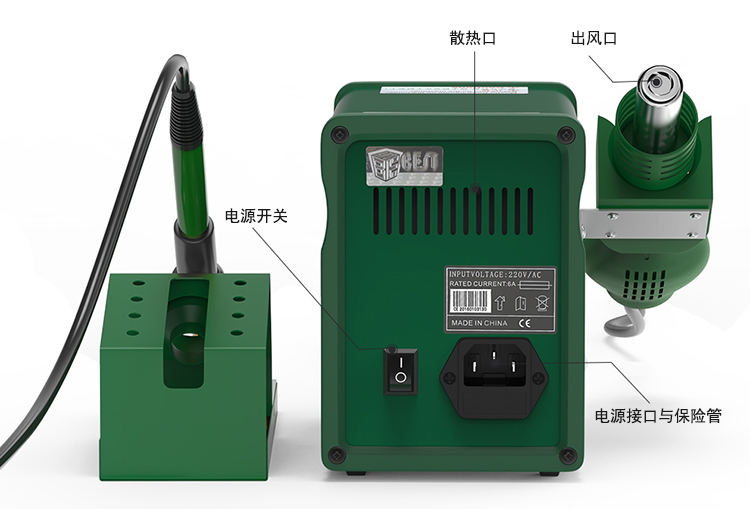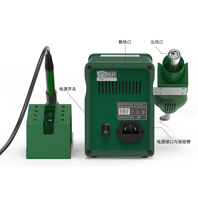 ? 產(chǎn)品名稱: 二合一雙數(shù)顯智能無鉛螺旋式熱風(fēng)槍+焊臺(tái)