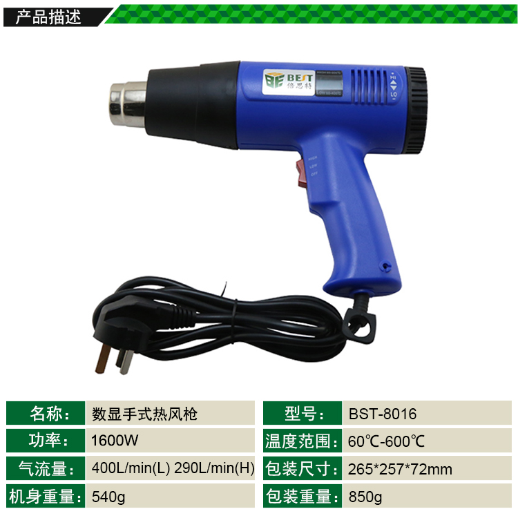 ? 產(chǎn)品名稱(chēng): LED數(shù)顯手持式熱風(fēng)槍