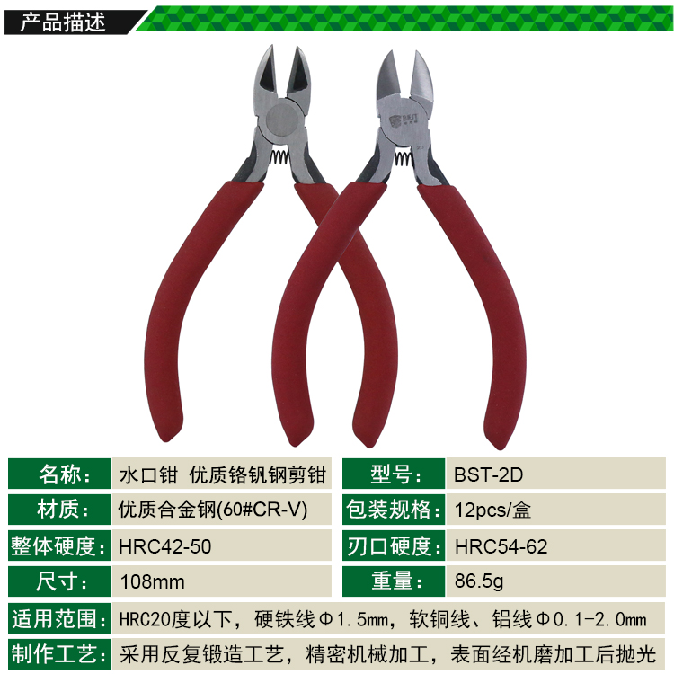 返回當(dāng)前位置: 首頁(yè) / 產(chǎn)品中心 / BST-2D 優(yōu)質(zhì)鉻釩鋼電子剪鉗 水口鉗 塑料剪鉗 5寸鉗子