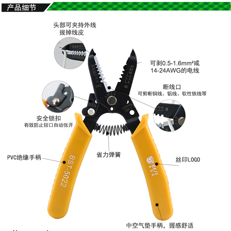 返回當(dāng)前位置: 首頁 / 產(chǎn)品中心 / BST-5022 剝線鉗 電線鉗 多功能剝線鉗