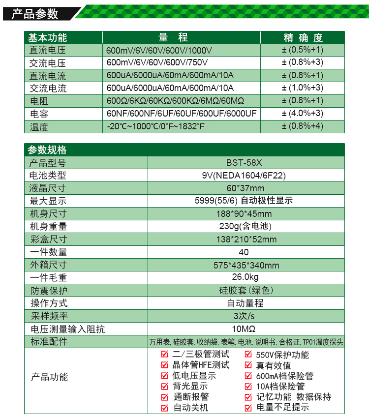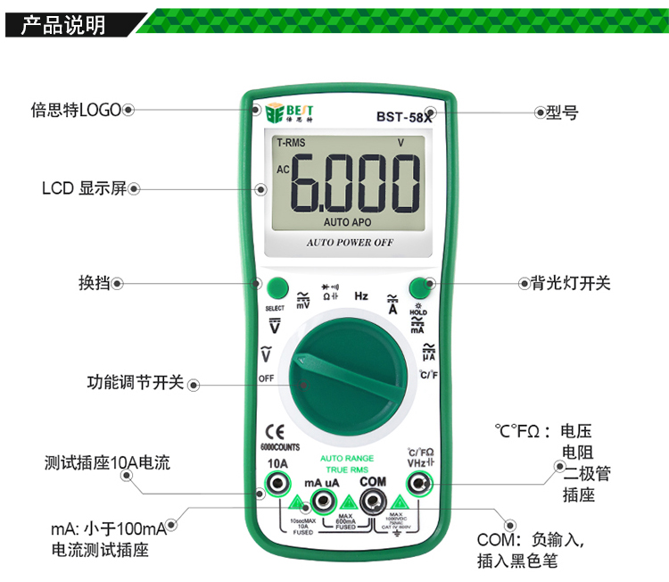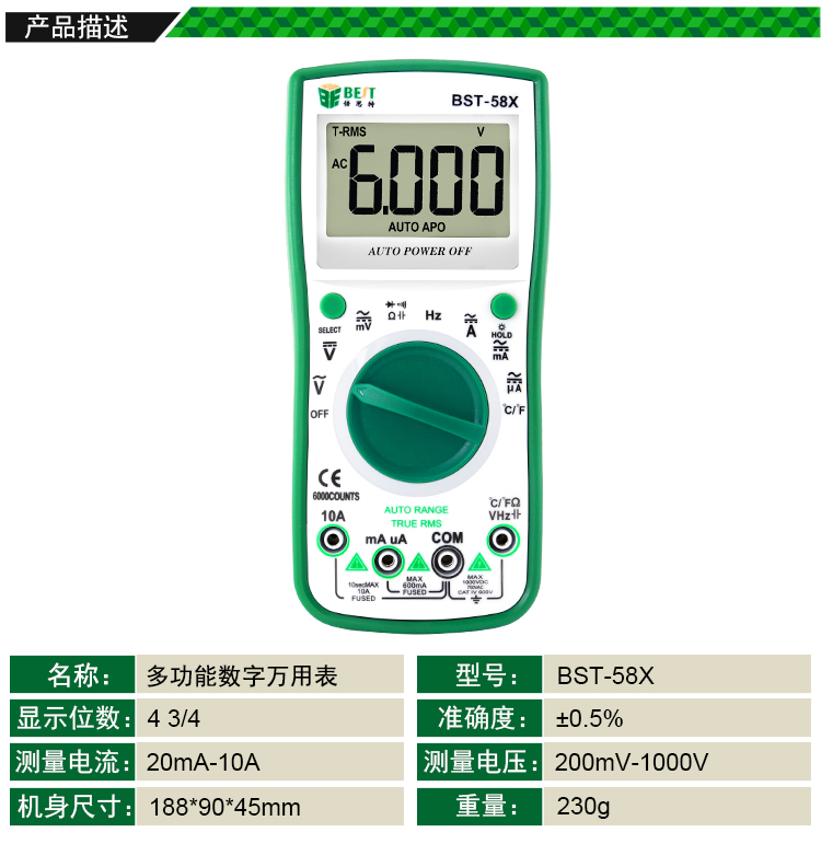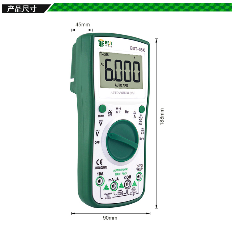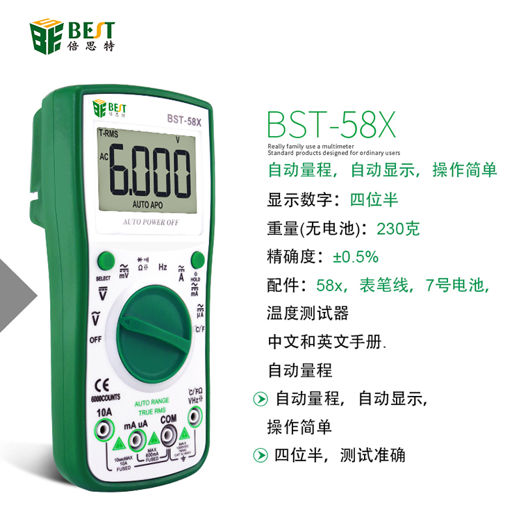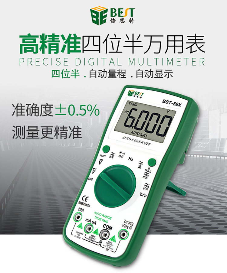 返回當(dāng)前位置: 首頁(yè) / 產(chǎn)品中心 / BST-58X 多功能數(shù)字萬(wàn)用表 自動(dòng)量程 四位半背光顯示屏 智能防燒