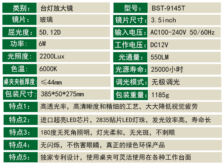 返回當(dāng)前位置: 首頁 / 產(chǎn)品中心 / BST-9145T 黑色可調(diào)亮度LED放大鏡臺燈