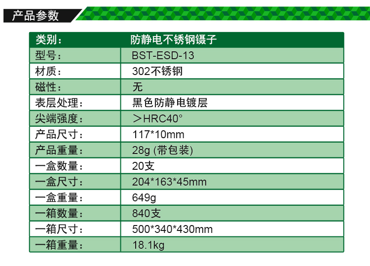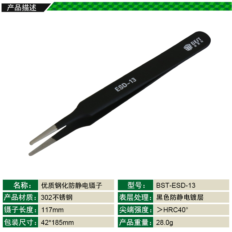 返回當(dāng)前位置: 首頁 / 產(chǎn)品中心 / BST-ESD-13 優(yōu)質(zhì)鋼化高級防靜電鑷子