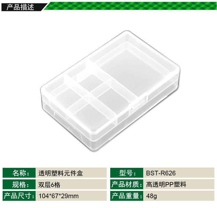 返回當(dāng)前位置: 首頁(yè) / 產(chǎn)品中心 / BST-R626 雙層6格透明塑料元件盒 零件盒 芯片盒 IC盒 貼片元件盒
