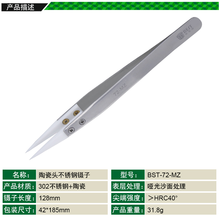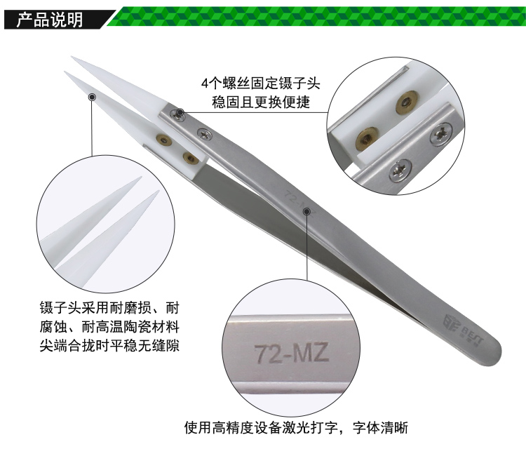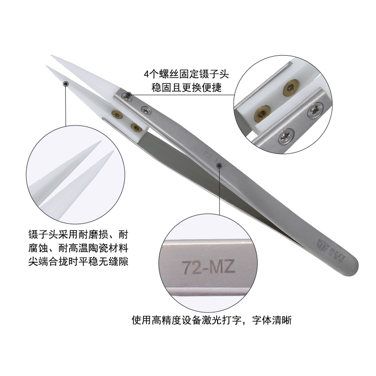 返回當前位置: 首頁 / 產(chǎn)品中心 / BST-72-MZ 陶瓷頭不銹鋼鑷子 可換頭陶瓷直鑷子