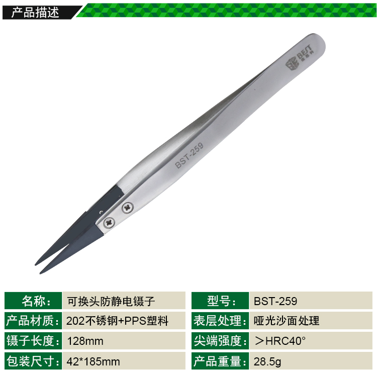 返回當(dāng)前位置: 首頁 / 產(chǎn)品中心 / BST-259 防靜電鑷子可換頭 碳纖維塑料換頭鑷子