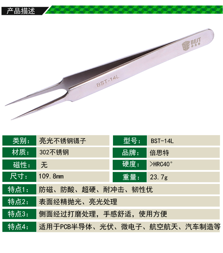 返回當(dāng)前位置: 首頁(yè) / 產(chǎn)品中心 / BST-14L 亮光鑷子 不銹鋼鑷子