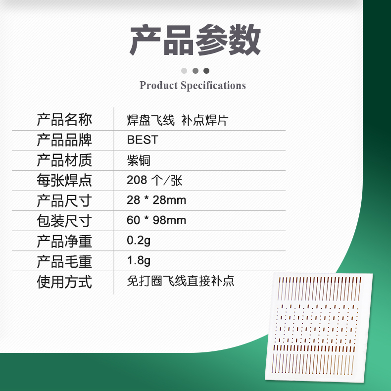 返回當(dāng)前位置: 首頁 / 產(chǎn)品中心 / 倍思特維修焊盤飛線無痕修復(fù)紫銅補(bǔ)點(diǎn)焊片免打圈飛線直接補(bǔ)點(diǎn)焊接