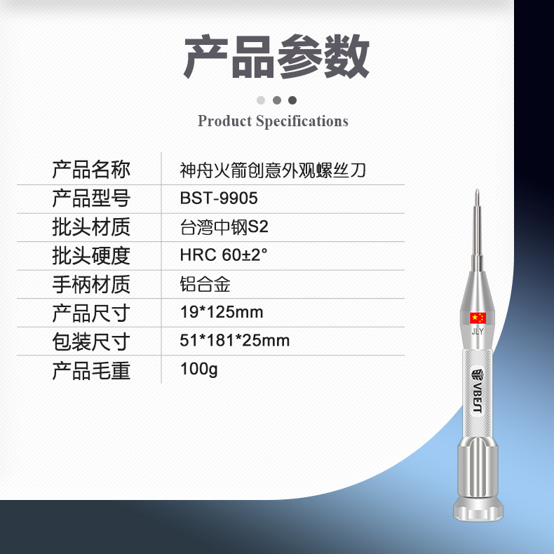 返回當(dāng)前位置: 首頁(yè) / 產(chǎn)品中心 / BST-9905 精密航空鋁合金螺絲刀 S2螺絲刀頭 神舟火箭創(chuàng)意外觀螺絲批 單支禮盒裝