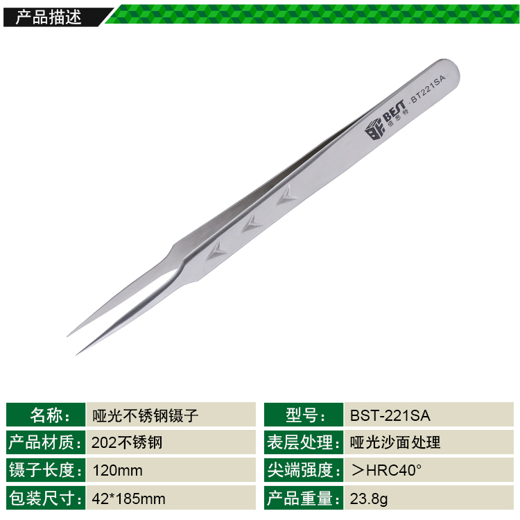 返回當(dāng)前位置: 首頁 / 產(chǎn)品中心 / BST-221SA 亞光鑷子 啞光不銹鋼鑷子