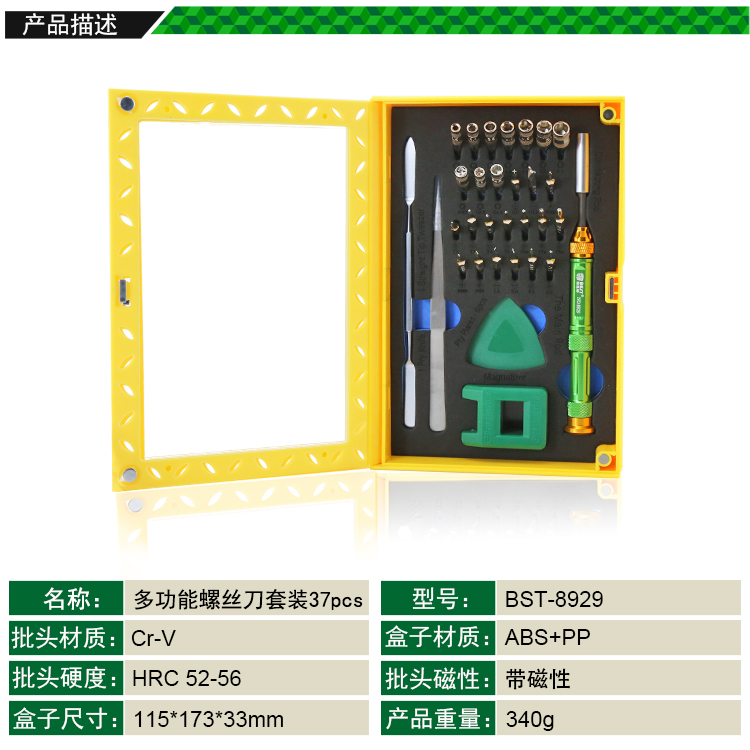 返回當前位置: 首頁 / 產(chǎn)品中心 / BST-8929 多功能螺絲刀套裝37pcs
