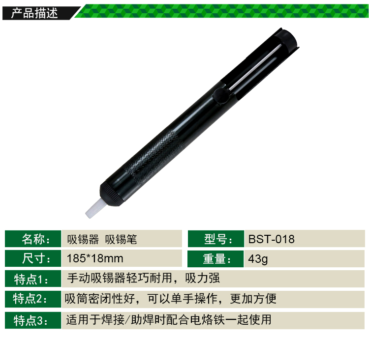 返回當(dāng)前位置: 首頁(yè) / 產(chǎn)品中心 / BST-018 吸錫器 吸錫筆