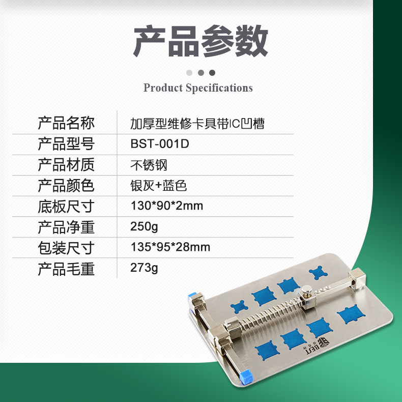 返回當(dāng)前位置: 首頁 / 產(chǎn)品中心 / BST-001D 加厚型維修卡具帶IC凹槽 維修夾具平臺(tái)(銀色)