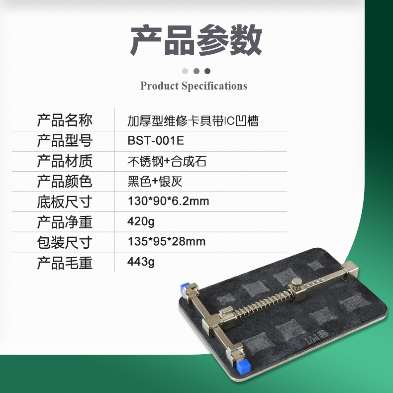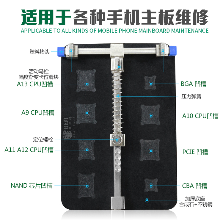 返回當(dāng)前位置: 首頁 / 產(chǎn)品中心 / BST-001E 加厚型合成石 維修卡具帶IC凹槽 維修夾具平臺(黑色)
