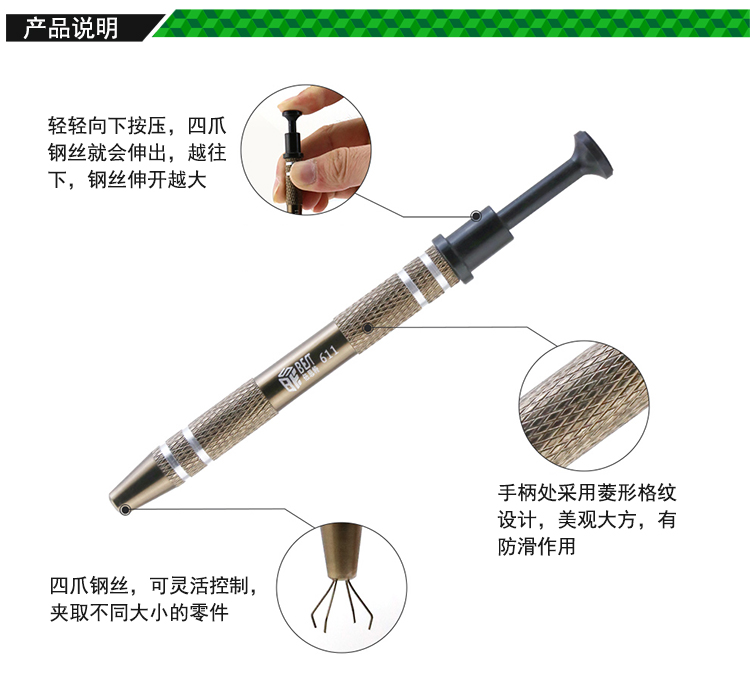 返回當(dāng)前位置: 首頁 / 產(chǎn)品中心 / BST-611 零件抓取器 四爪取物器 IC抓取器