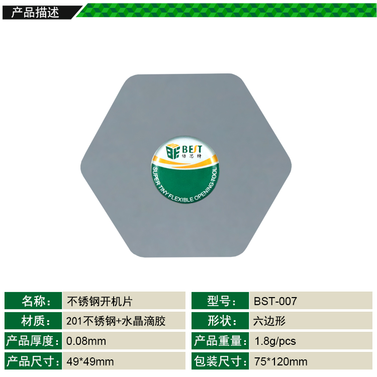 返回當前位置: 首頁 / 產(chǎn)品中心 / BST-007 不銹鋼開機片(六邊形)