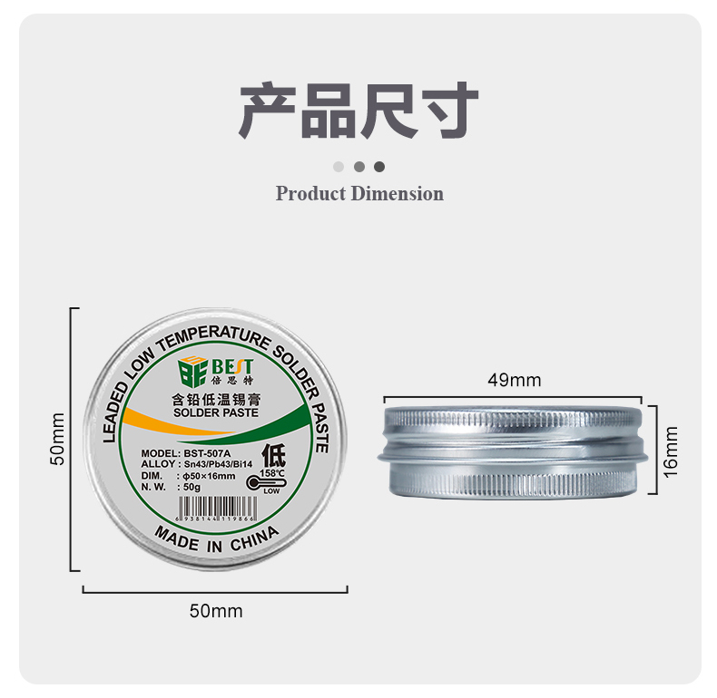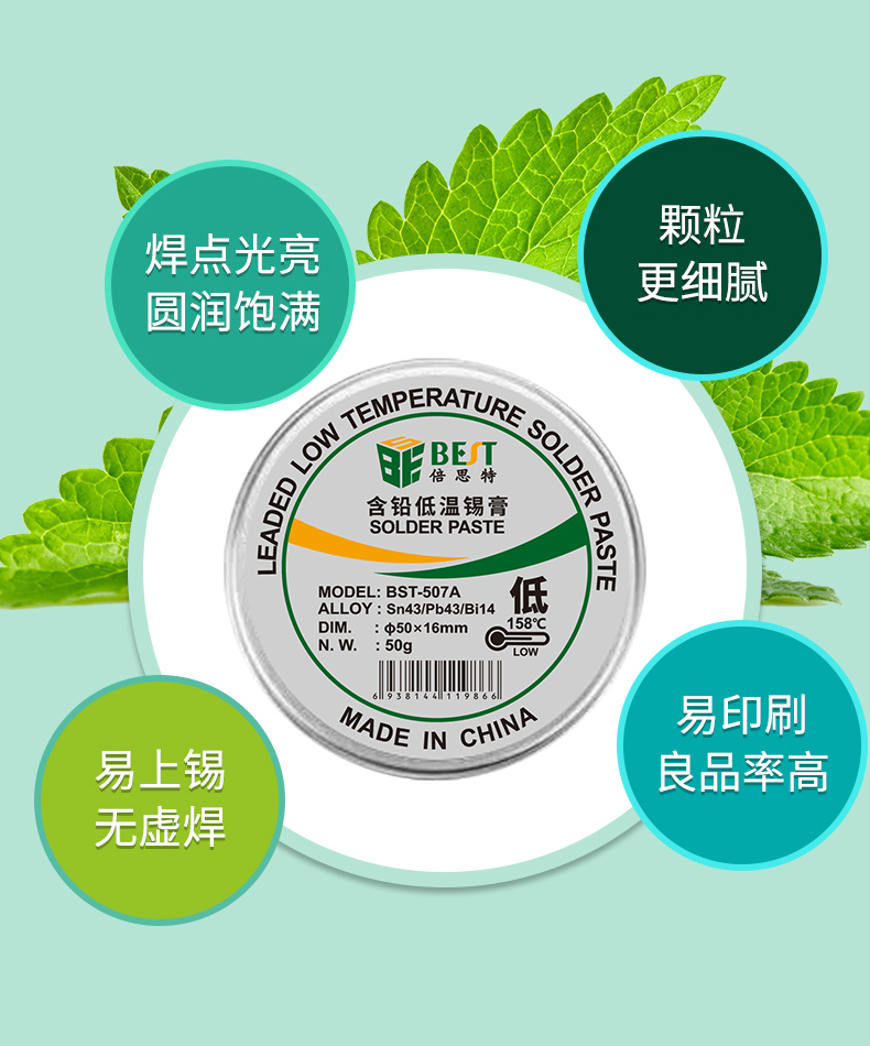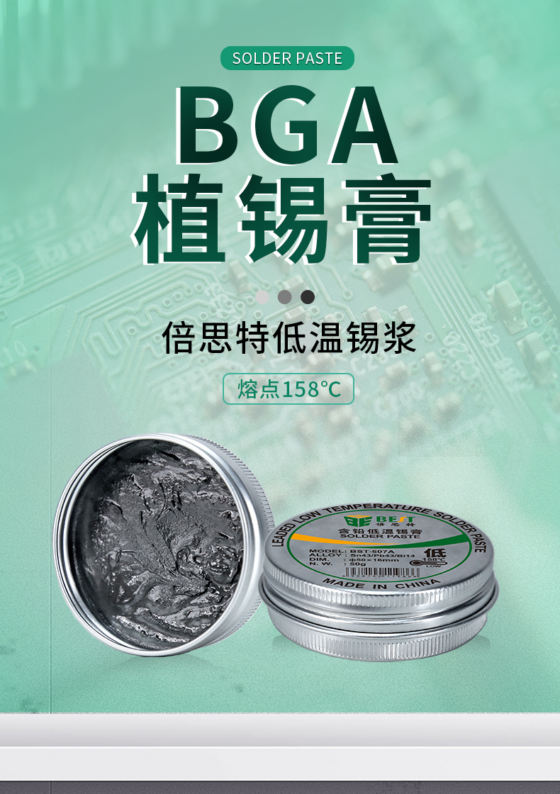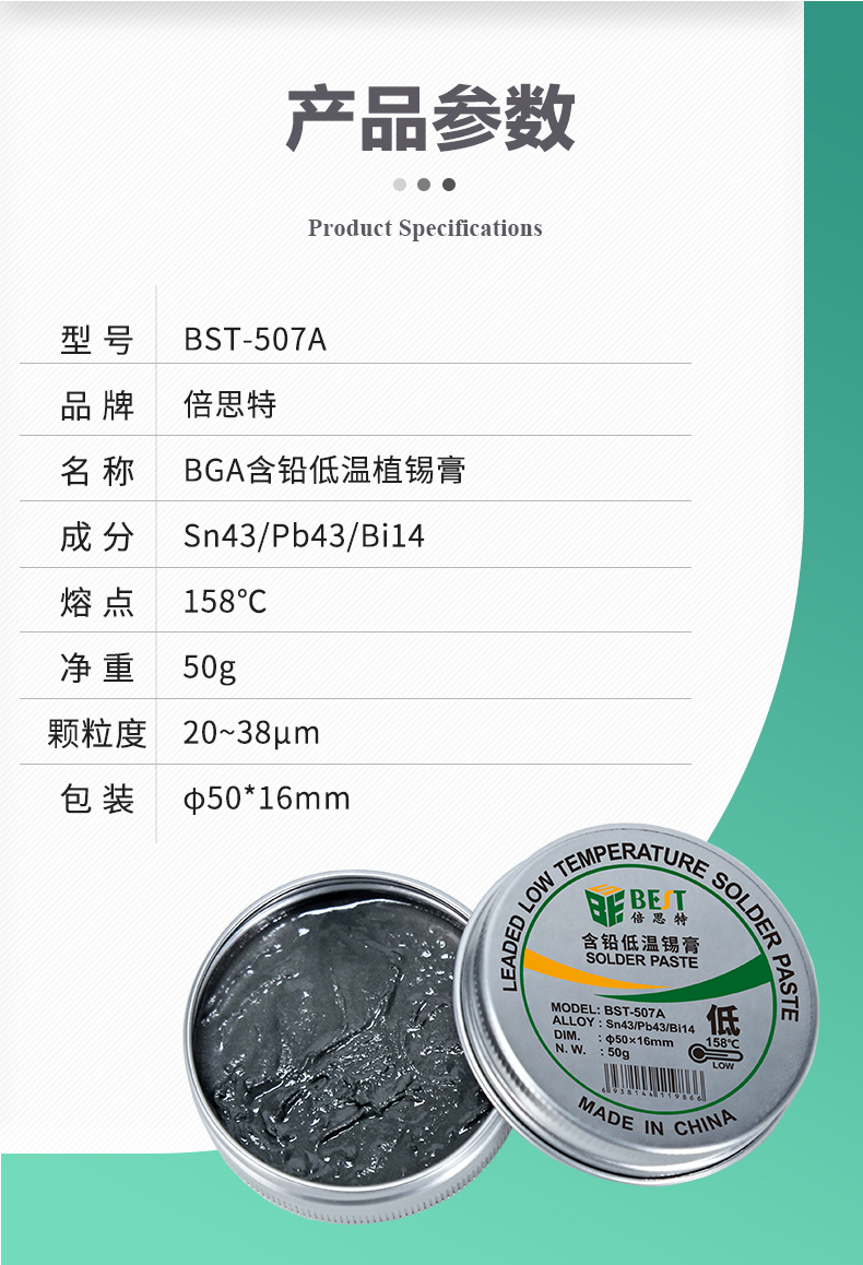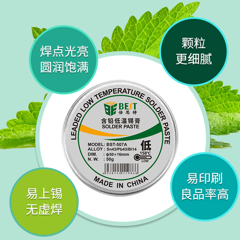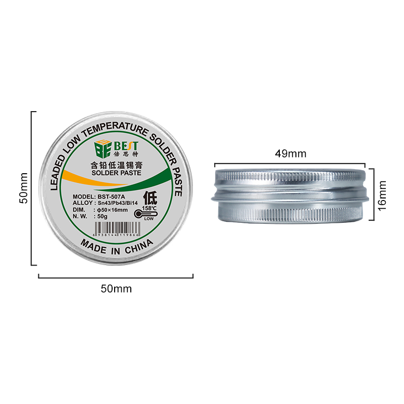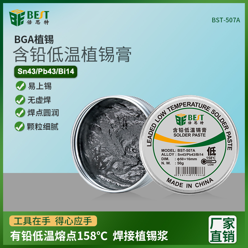 返回當(dāng)前位置: 首頁 / 產(chǎn)品中心 / BST-507A 含鉛低溫錫膏 Sn43/Pb43/Bi14 鋁罐BGA植錫膏50g
