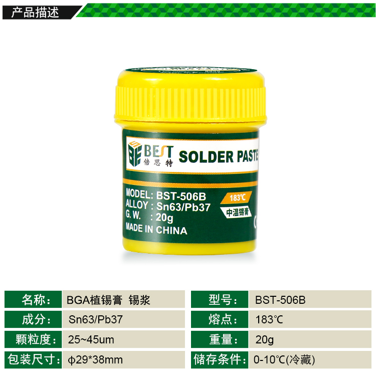 返回當(dāng)前位置: 首頁(yè) / 產(chǎn)品中心 / BST-506B 中溫錫漿 BGA植錫膏 Sn63/Pb37 20g