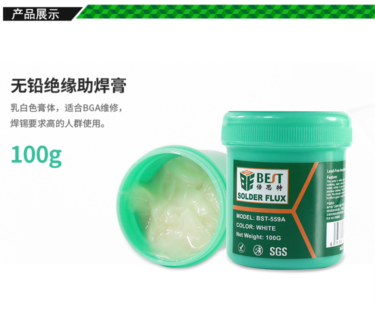 返回當(dāng)前位置: 首頁 / 產(chǎn)品中心 / BST-559A 無鉛絕緣助焊膏 BGA助焊膏 免洗維修松香 無鉛無鹵助焊劑焊油 100g
