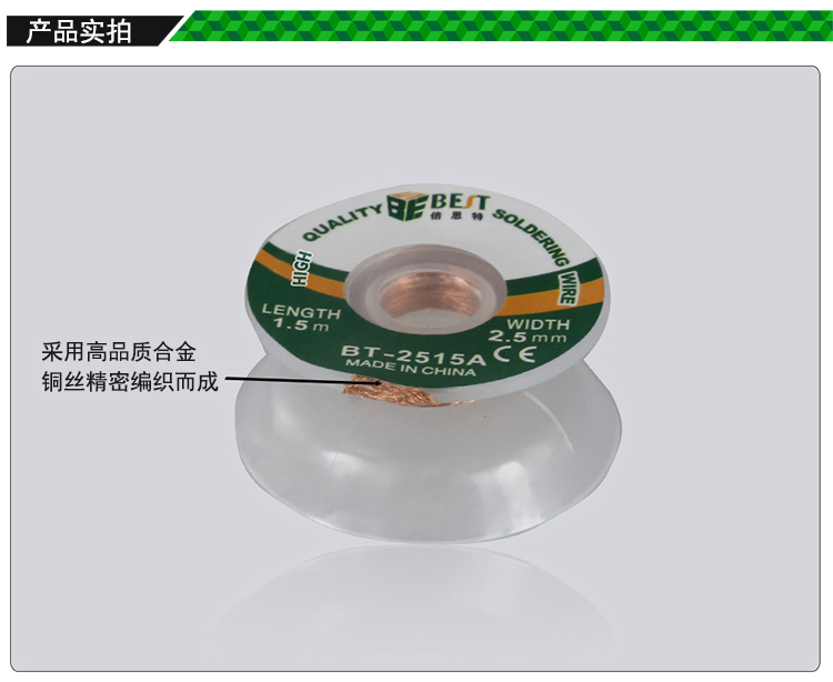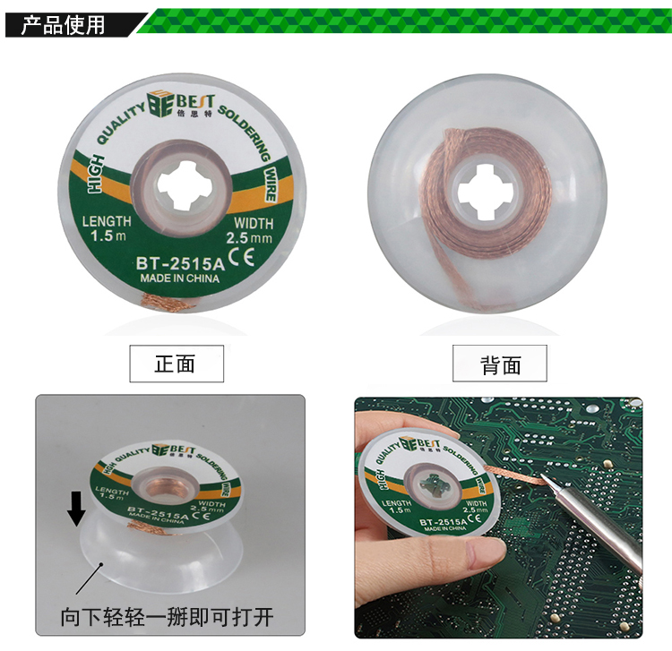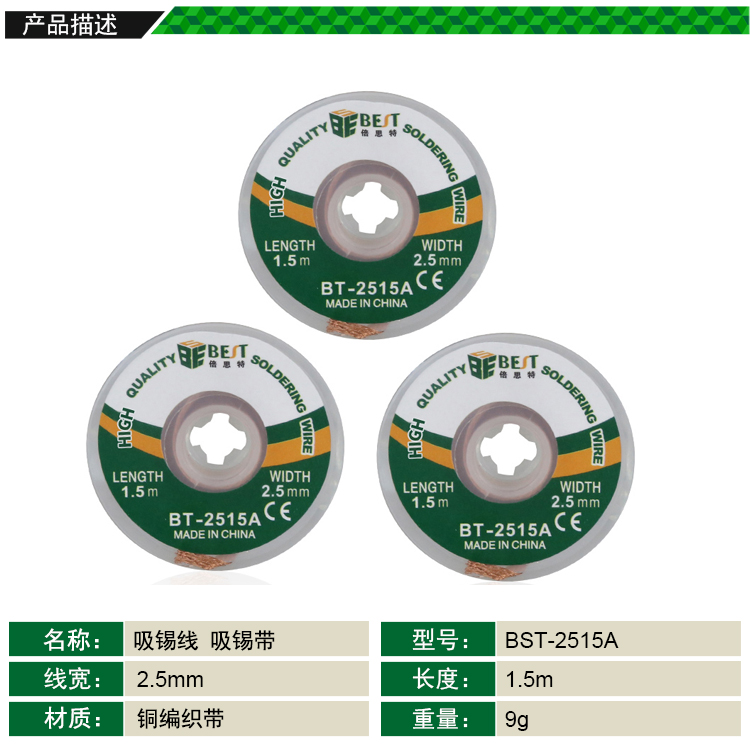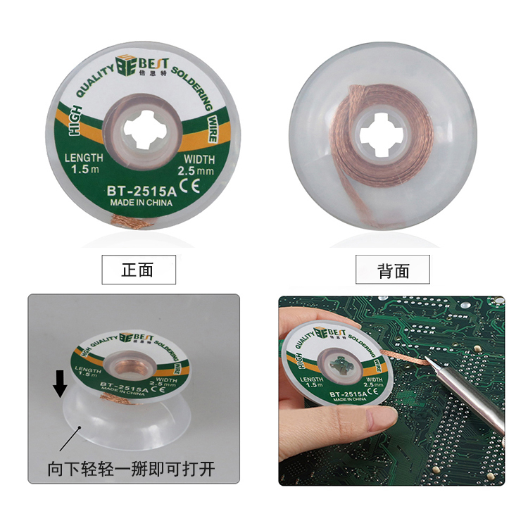 返回當前位置: 首頁 / 產(chǎn)品中心 / BST-2515A 吸錫線 非鹵素低殘渣免清洗吸錫帶 清理焊盤必備