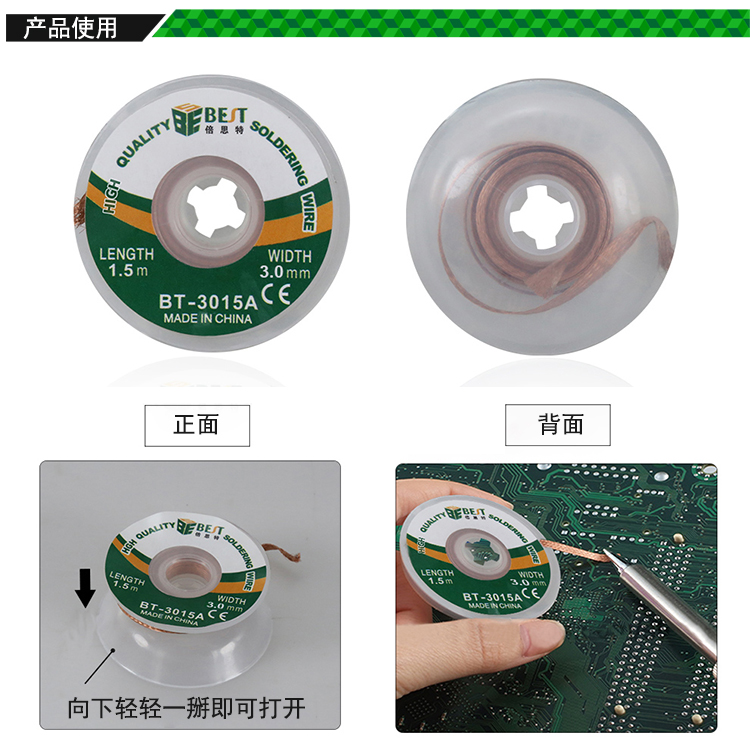 返回當(dāng)前位置: 首頁(yè) / 產(chǎn)品中心 / BST-3015A 吸錫線 非鹵素低殘?jiān)馇逑次a帶 清理焊盤必備