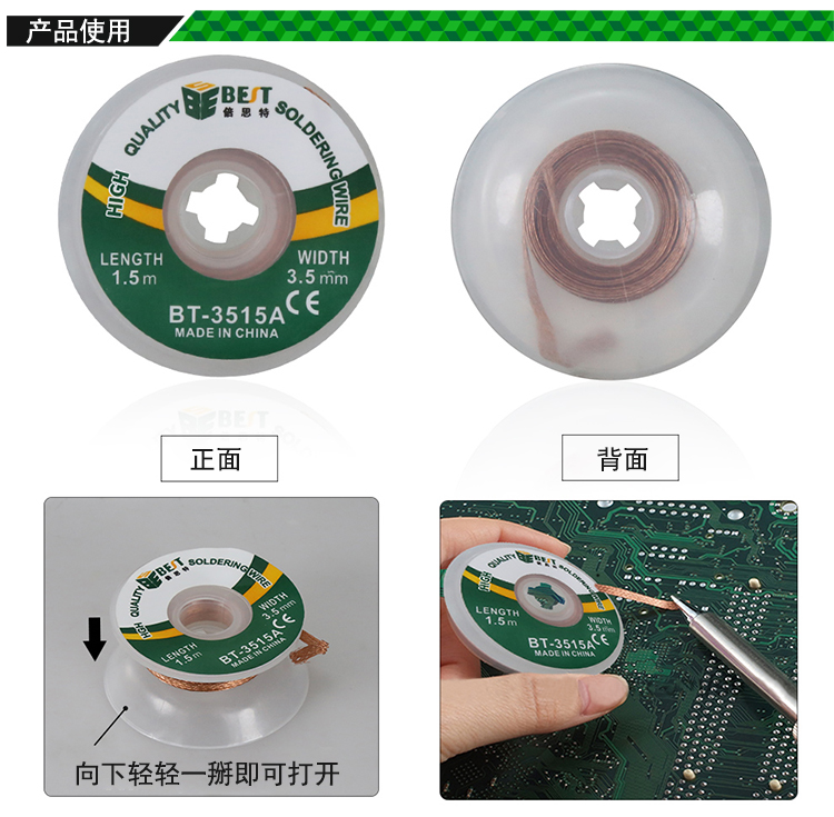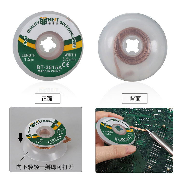 返回當(dāng)前位置: 首頁(yè) / 產(chǎn)品中心 / BST-3515A 吸錫線 非鹵素低殘?jiān)馇逑次a帶 清理焊盤必備