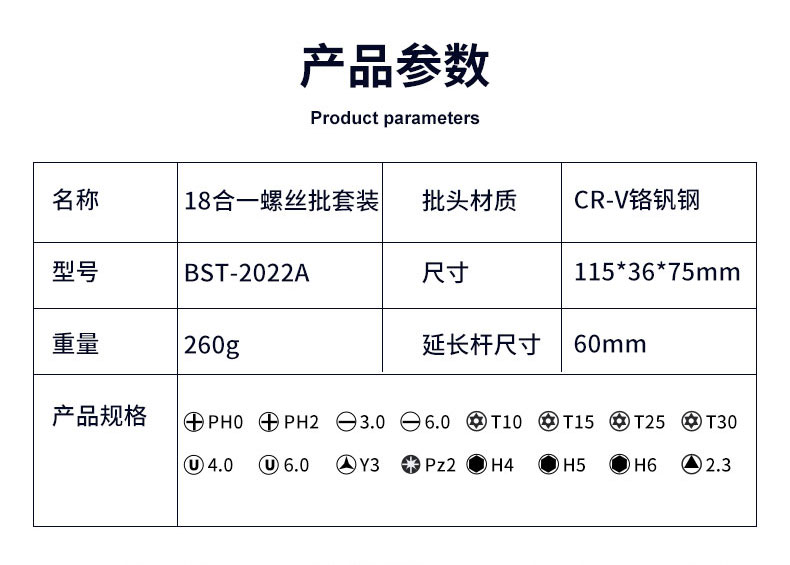 返回當(dāng)前位置: 首頁(yè) / 產(chǎn)品中心 / BST-2022A 雙向棘輪18合一螺絲批套裝