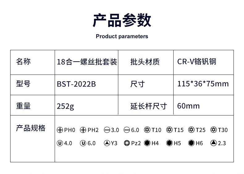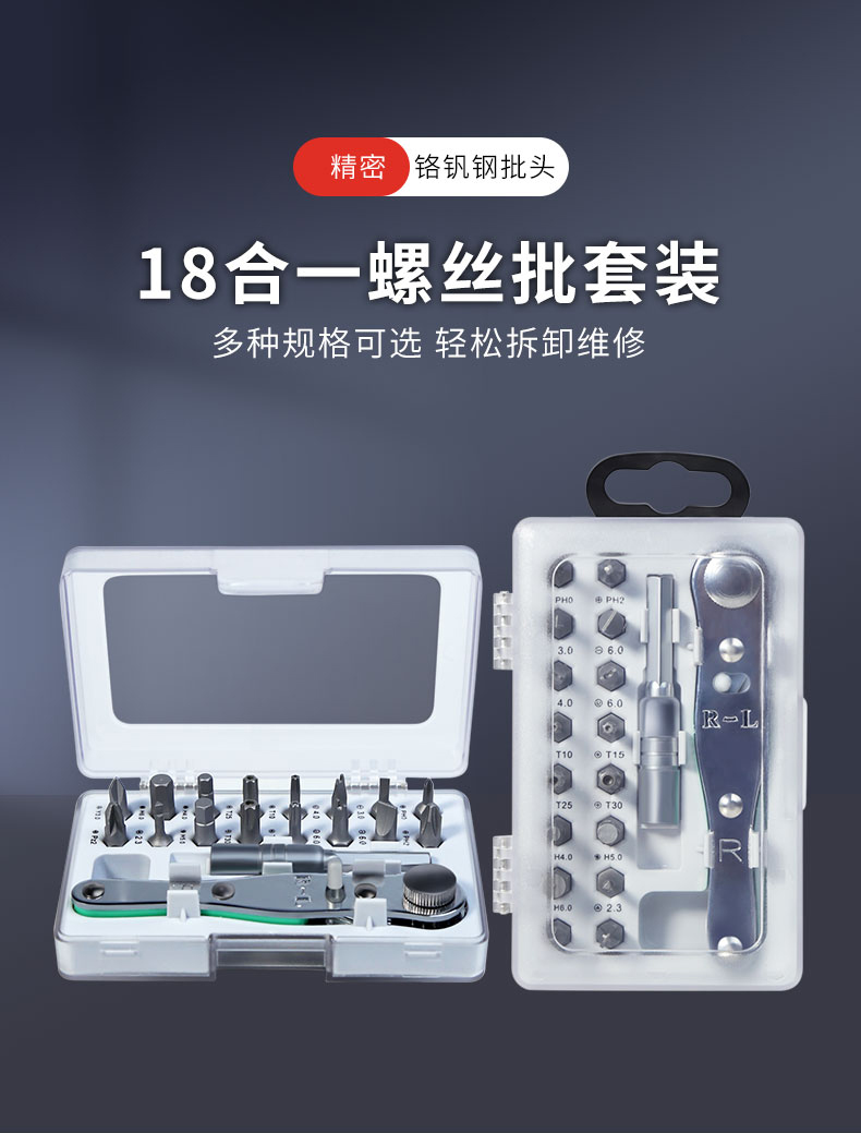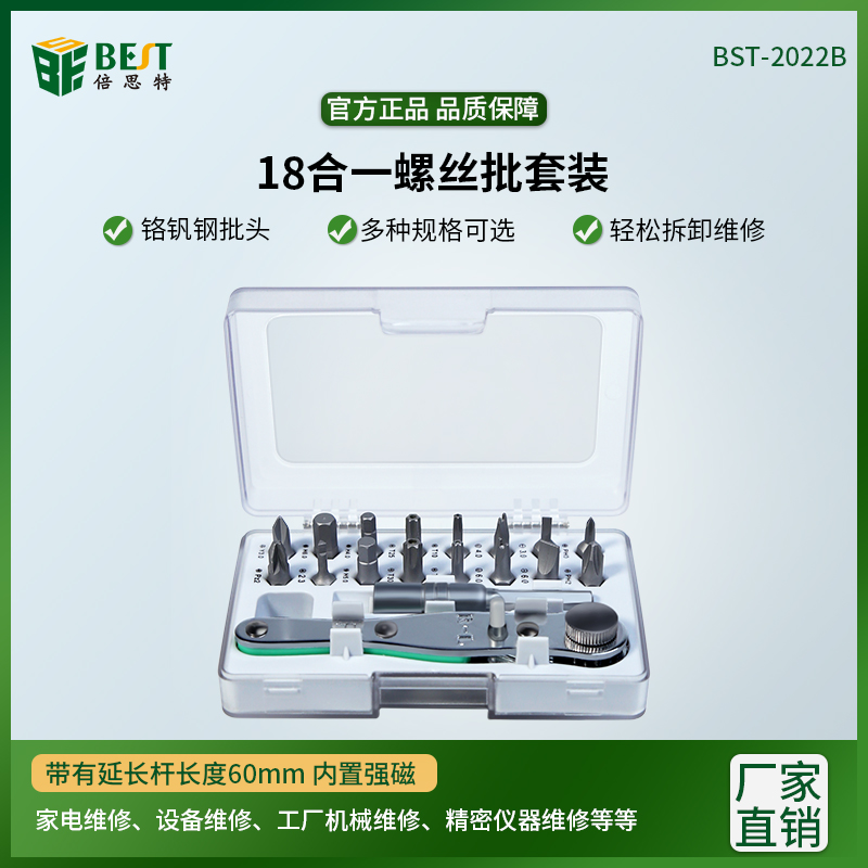 返回當前位置: 首頁 / 產品中心 / BST-2022B 雙向棘輪18合一螺絲批套裝