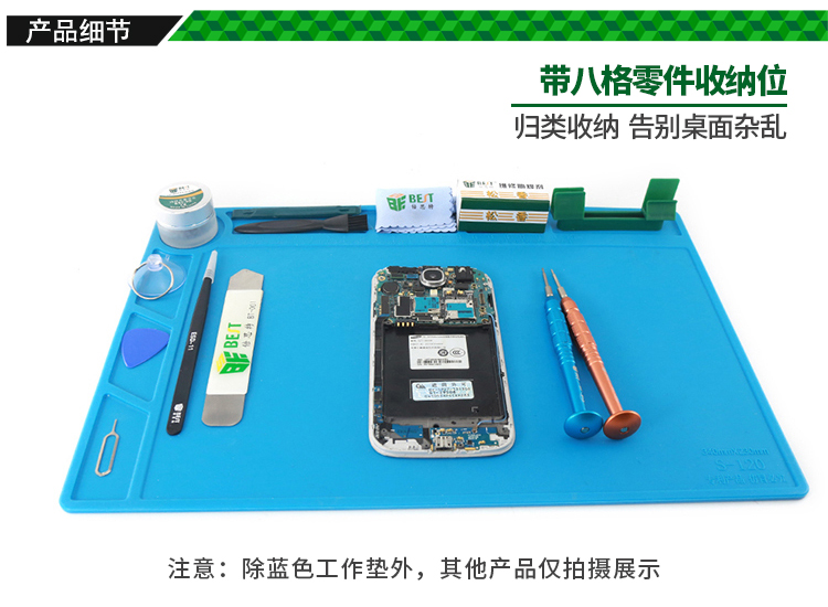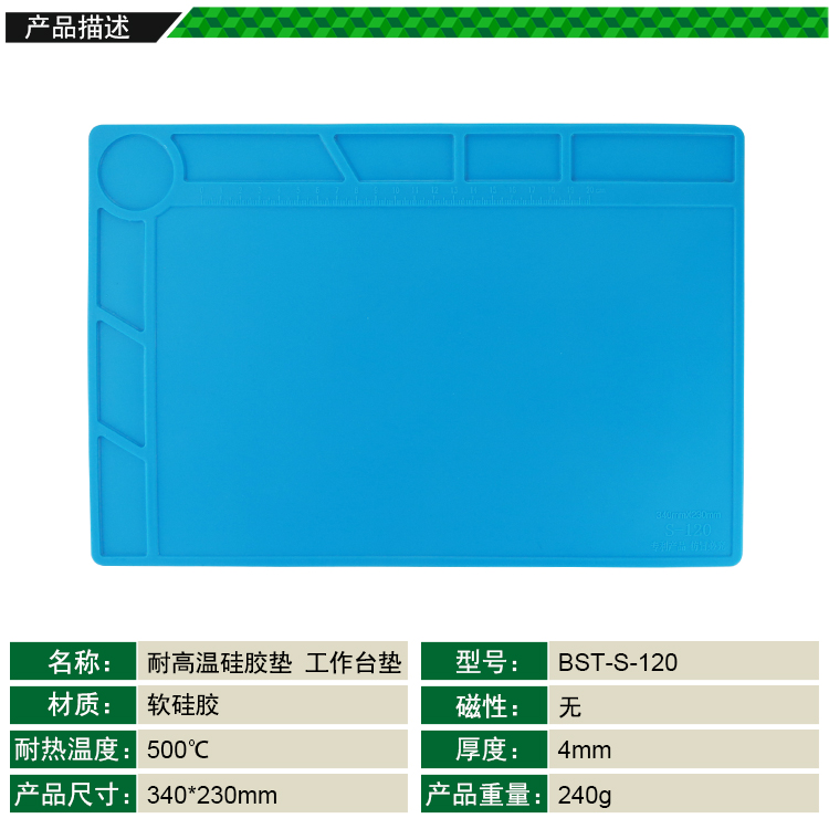 返回當前位置: 首頁 / 產(chǎn)品中心 / BST-S-120 耐高溫硅膠墊 工作臺墊 帶八格零件收納 隔熱墊