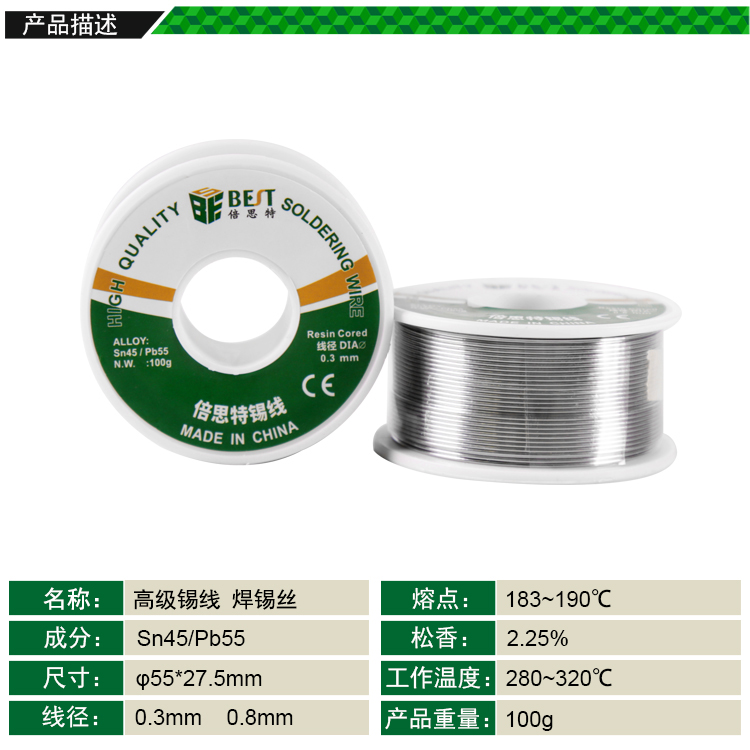 返回當(dāng)前位置: 首頁 / 產(chǎn)品中心 / BEST倍思特(¢0.3-0.8mm) 100g高級錫線 焊接錫線 焊錫絲 優(yōu)質(zhì)錫線 低殘渣錫線 Sn45/Pb55