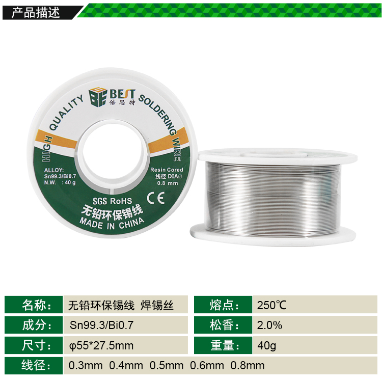 返回當(dāng)前位置: 首頁 / 產(chǎn)品中心 / BEST倍思特(¢0.4-0.8mm) 40g無鉛環(huán)保錫線 焊接錫線 焊錫絲 優(yōu)質(zhì)錫線 低殘?jiān)a線 Sn99.3/Bi0.7