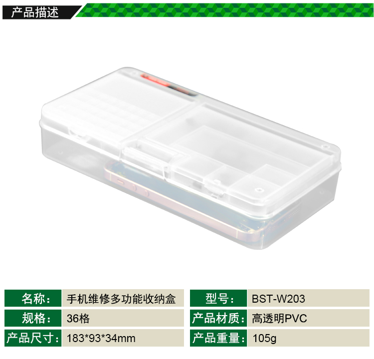 返回當(dāng)前位置: 首頁(yè) / 產(chǎn)品中心 / BST-W203 雙層透明塑料元件盒 手機(jī)維修多功能收納盒