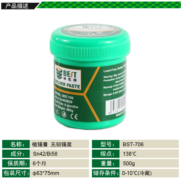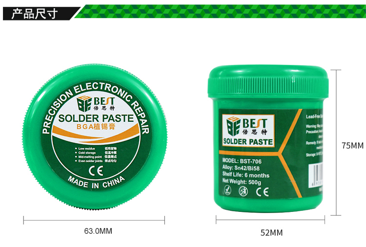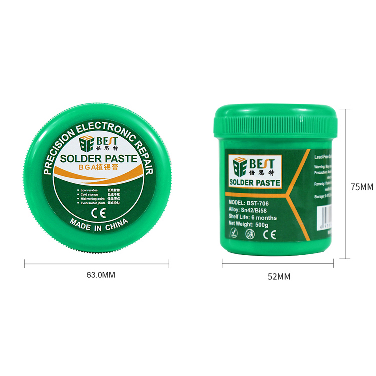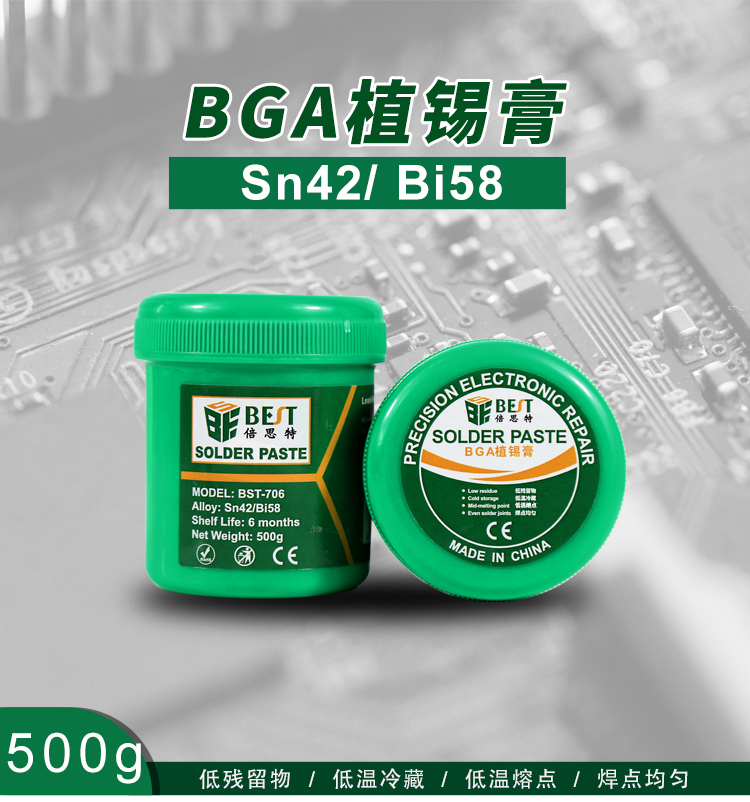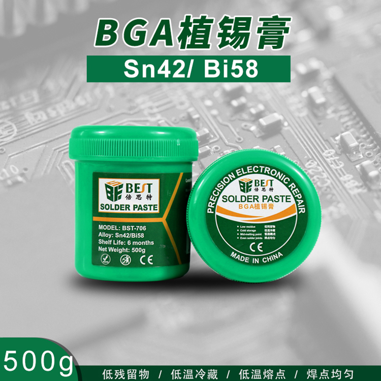 返回當(dāng)前位置: 首頁(yè) / 產(chǎn)品中心 / BST-706 無鉛錫漿 低溫錫漿 焊錫膏 BGA植錫膏 Sn42/Bi58 500g
