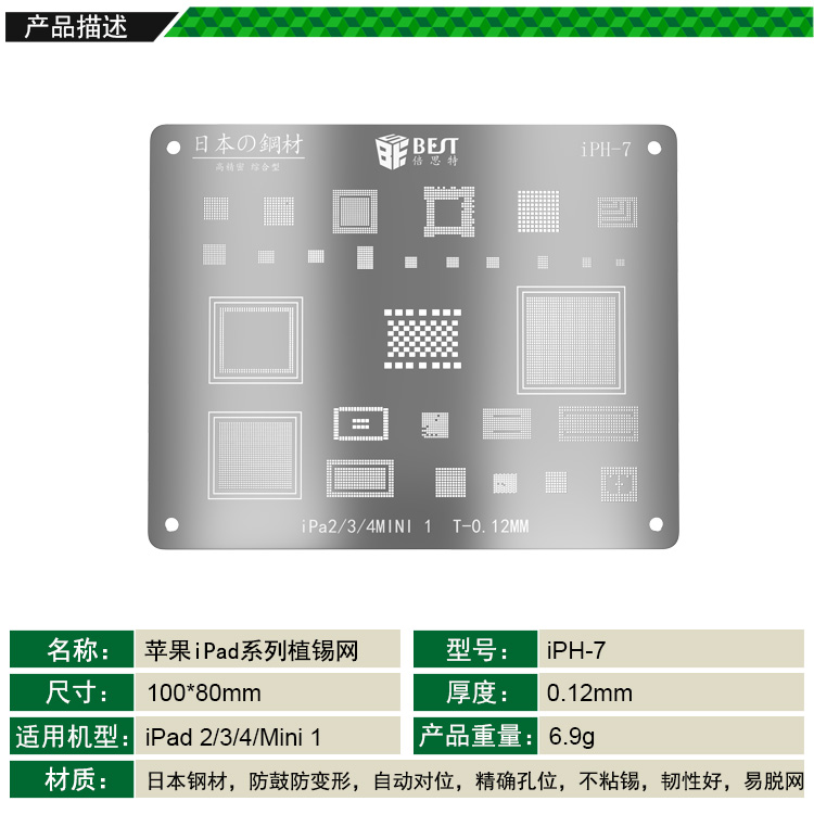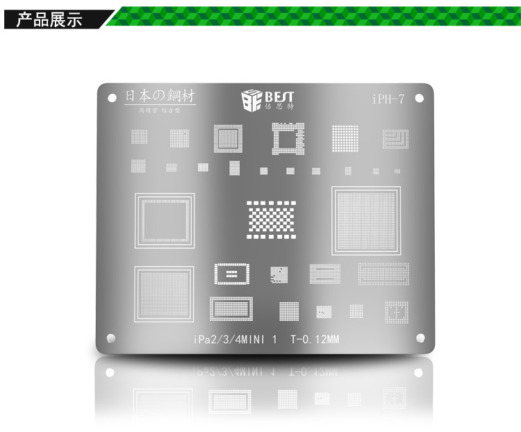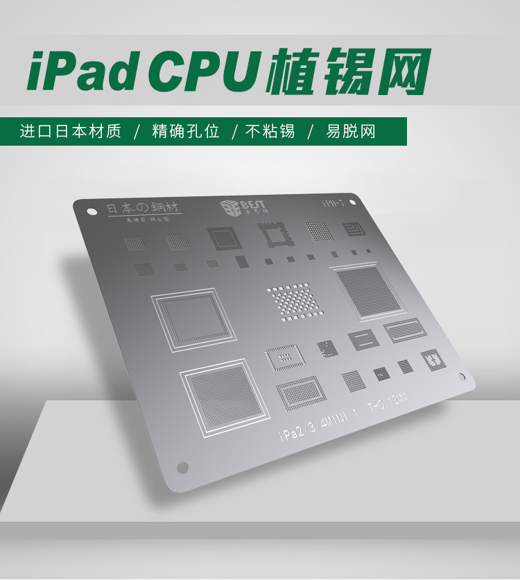 返回當(dāng)前位置: 首頁 / 產(chǎn)品中心 / iPH-7 iPad 2/3/4/Mini 1專用植錫網(wǎng) 多用植錫方孔定位鋼網(wǎng) 植錫卡
