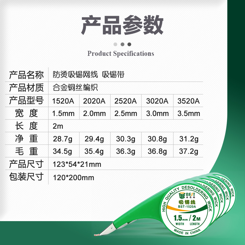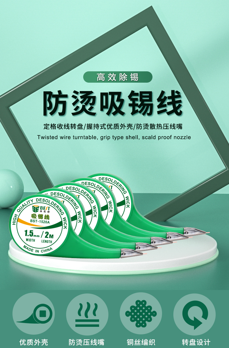 返回當前位置: 首頁 / 產(chǎn)品中心 / BST-防燙吸錫線 非鹵素低殘渣免清洗吸錫帶 純銅絲精密編織 定格收線轉(zhuǎn)盤 1520A/2020A/2520A/3020A/3520A