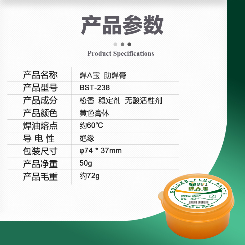 返回當(dāng)前位置: 首頁 / 產(chǎn)品中心 / BST-238 焊A寶 助焊膏50g 焊油助焊劑松香